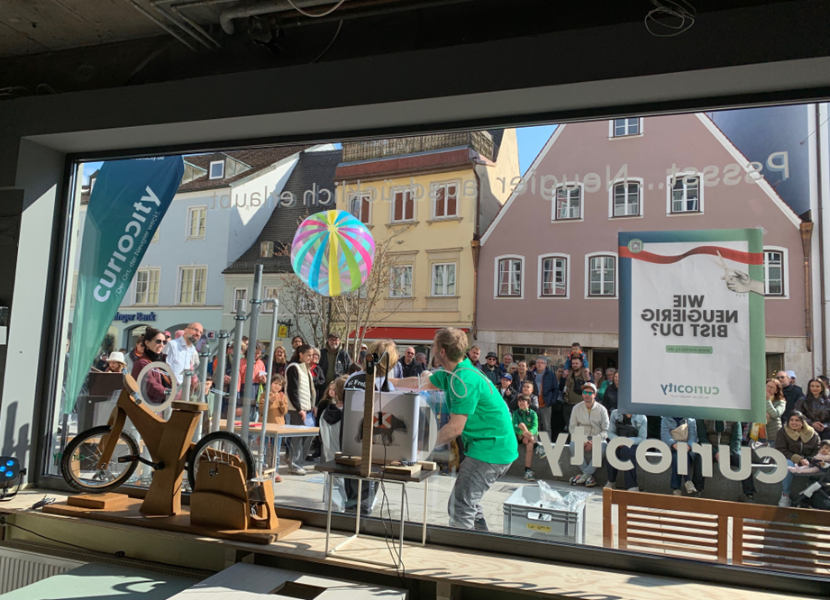 curiocity ist das Science Center im Aufbau für die Region Freising – und dieser Pop-Up ist unser erster dauerhafter Ausstellungsort. Zwei Monate lang entsteht mitten in der Freisinger Innenstadt ein Ort, an dem Neugier kein Alter kennt.